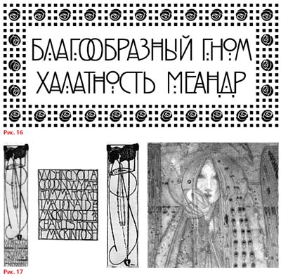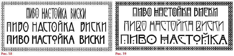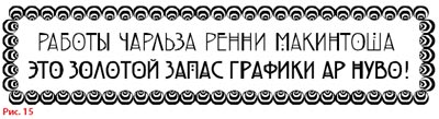 После проведенного в предыдущем разделе рассмотрения будет значительно проще прокомментировать последний пример первой части статьи. Для определенности приведем здесь созданную на кириллическом материале комбинированную иллюстрацию (рис. 15), графика которой по рисунку близка к латинской гарнитуре ITC Rennie Macintosh.
