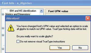 После подтверждения внесенных изменений посредством нажатия кнопки Apply появляется дополнительное контрольное окно (рис. 4). Фиксация маркером поля Do not remove TrueType instructions в этом окне позволяет избежать потери сложных и весьма трудоемких в исполнении специальных разметочных инструкций. Такие инструкции, в частности, обеспечивали превосходное отображение на экране монитора текстов, набранных системными TrueTypeшрифтами, еще в те времена, когда в ходу были Windows 3.1, Windows 95 и «неюниксные» версии Mac OS. Однако, поскольку для отечественной практики реализация таких процедур, как правило, нехарактерна, маркировать данное поле не следует.