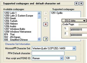 Операции со следующей группой функциональных панелей — Encoding and Unicode — очевидны, но являются весьма ответственными. Данная группа содержит две панели: Supported codepages and default character set и Supported Unicode ranges.