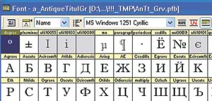 В этом месте рассмотрение конвертации гарнитуры AntiqueTitulGr можно было бы считать завершенным, поскольку все остальные операции, которые надо выполнить, описаны в первой части статьи. Тем не менее предлагаем ознакомиться с небольшим количеством дополнительного материала, который также связан с практическими потребностями.