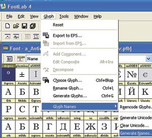 Хотя корректировка знакового ряда не имеет прямого отношения к теме статьи, однако она наглядно демонстрирует возможность FontLab по решению конкретных производственных задач. Отметим, что задачу корректировки знакового состава шрифта можно рассматривать и в расширенной постановке. Например, в качестве исходного материала может быть выбран латинский шрифт, к которому по описанной методике могут добавляться знаки кириллицы. При этом стоит напомнить, что из среды FontLab могут генерироваться не только OpenType, но и PostScript и TrueTypeшрифты. Это, в свою очередь, дает возможность использовать полученный шрифтовой материал в старых версиях операционных систем, а также в «неюникодных» графических и издательских приложениях.