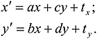 Матрица состоит из шести чисел: [a, b, c, d, tx, ty]. Итоговые координаты рассчитываются следующим образом: