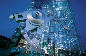 Перед зданием стоит крупнейшая в мире статуя лошади — творение немецкого скульптора Юргена Гёрца (Juergen Goertz). В этом произведении искусства ясно различимы две темы: вращение (главный принцип работы современных печатных машин и протекания основных процессов во Вселенной) и стремление вверх. (Кстати отсутствие у этого парнокопытного четвертой ноги придает статуе еще большую динамику и особую экстравагантность.)