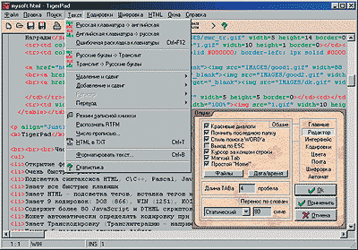 • поддержка HTML подсветка и вставка тэгов и т.п., оптимизация HTML, посредством ликвидации лишних тэгов;