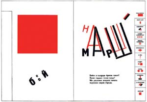 В стране шла Гражданская война. Симпатии Лазаря Лисицкого были на стороне революции, с которой он неразрывно связывал становление и дальнейшее развитие нового искусства. Художник принимал участие и в агитационно-пропагандистской работе, развернутой властью. Она в ту пору во многом была в руках энтузиастов и романтиков, которые и не подозревали, что вскоре начнут уничтожать друг друга. В связи с этим следует отметить сделанный Лисицким в 1919 году плакат «Бей белых красным клином». В его графическом решении угадываются черты направления, которое впоследствии получило название конструктивизма.